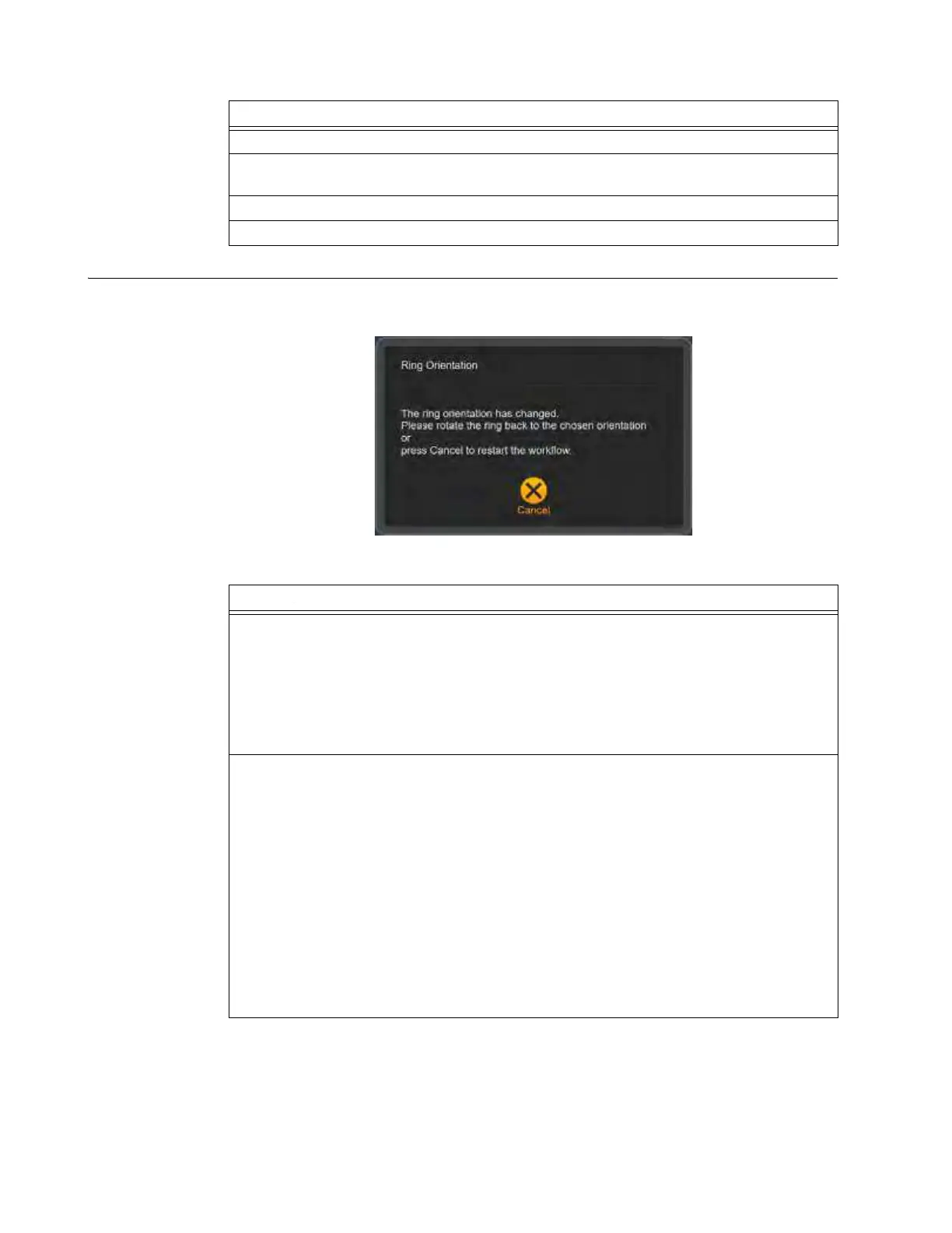 If the Ring is in the wrong orientation, move the table and rotate the Ring to the correct