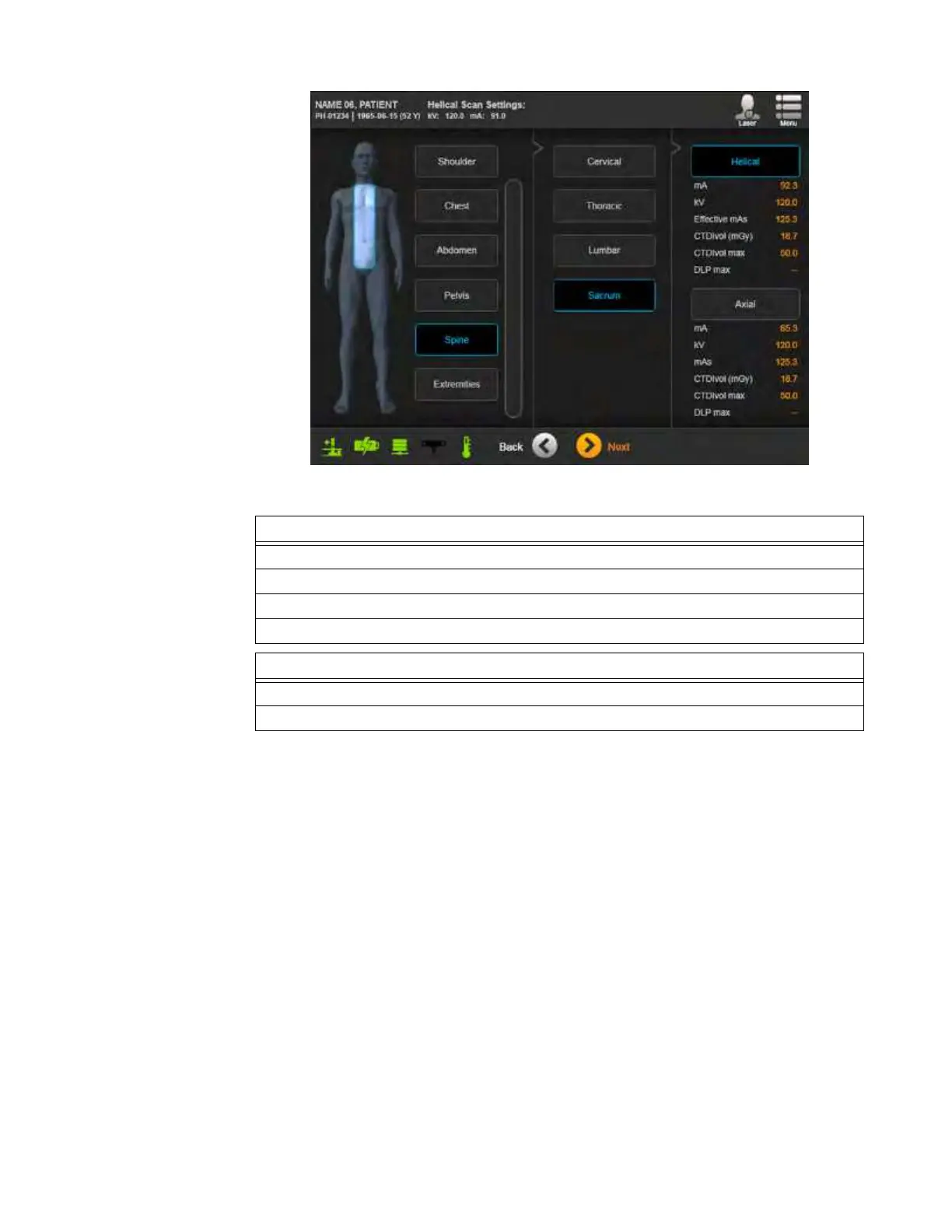 2. Select the protocol for the sub-region to be scanned (middle column).