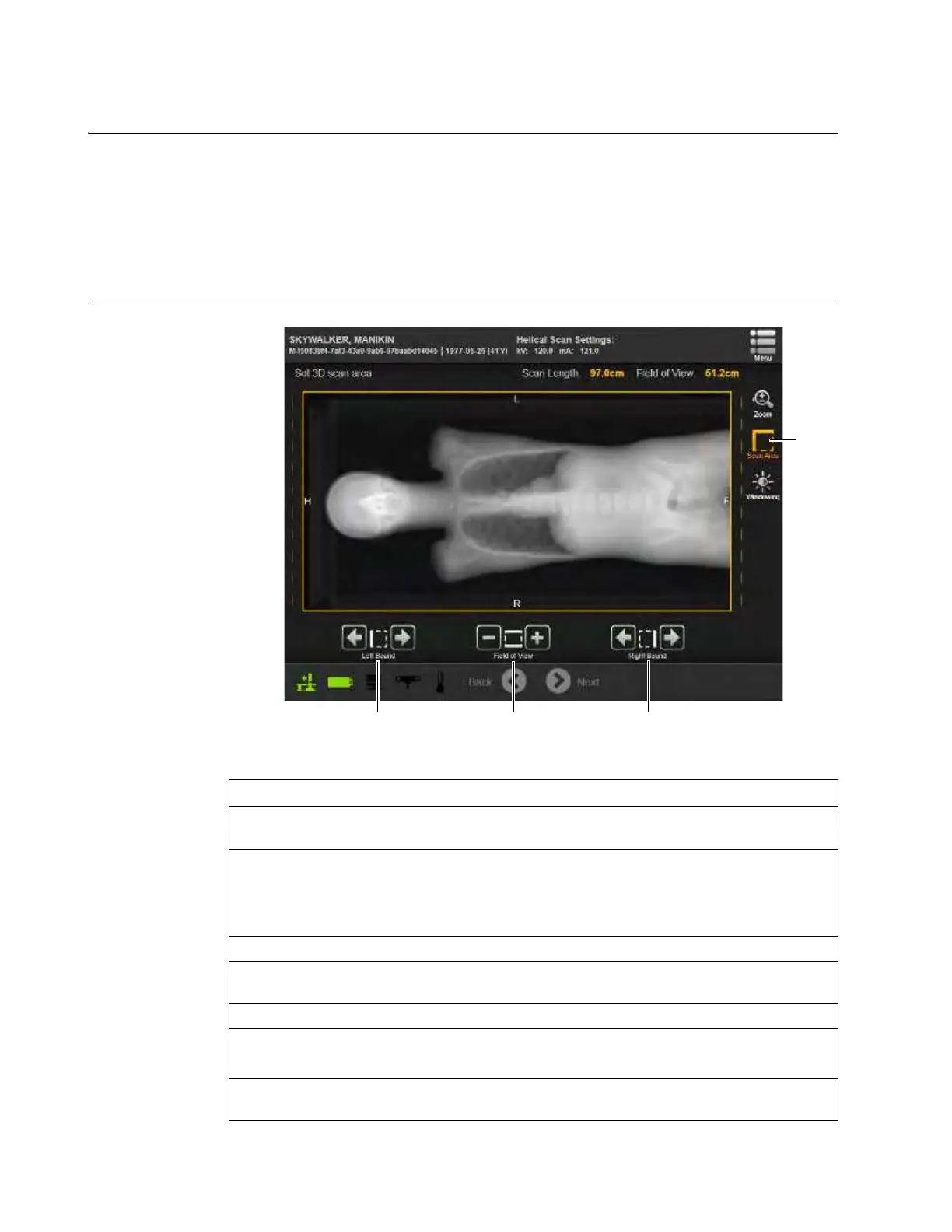 Overview After verifying the parameters and running a Scout Scan, an image appears on the Pendant screen.