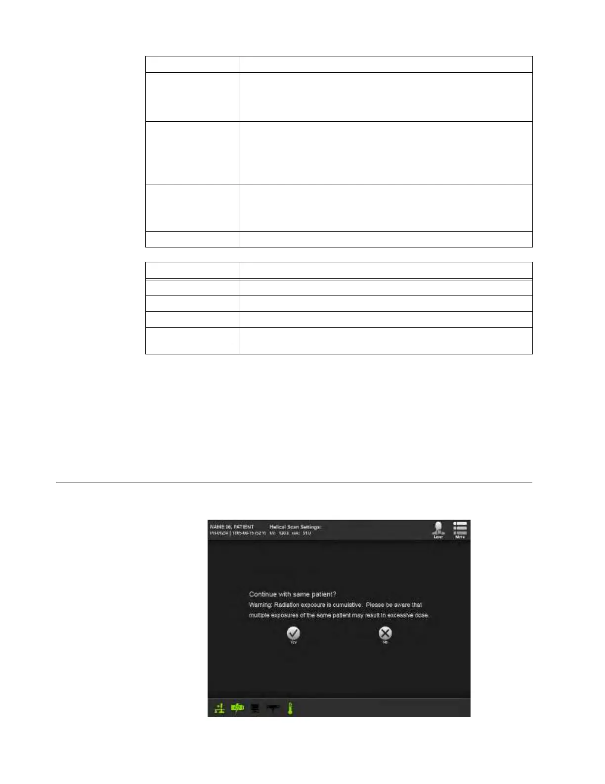 After saving and viewing the scan, the system warns users that radiation exposure is cumulative for