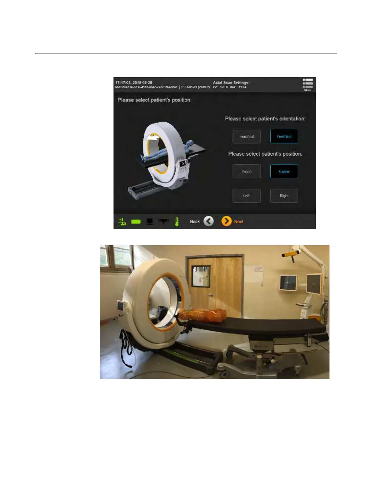 in a feet-first orientation for head scanning.