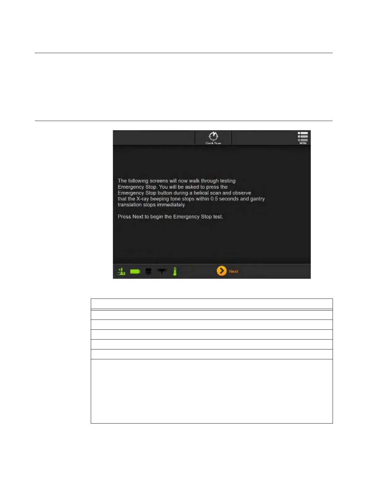 Overview An E-Stop, or Emergency Stop, test verifies that the scanner stops moving over the scan area and