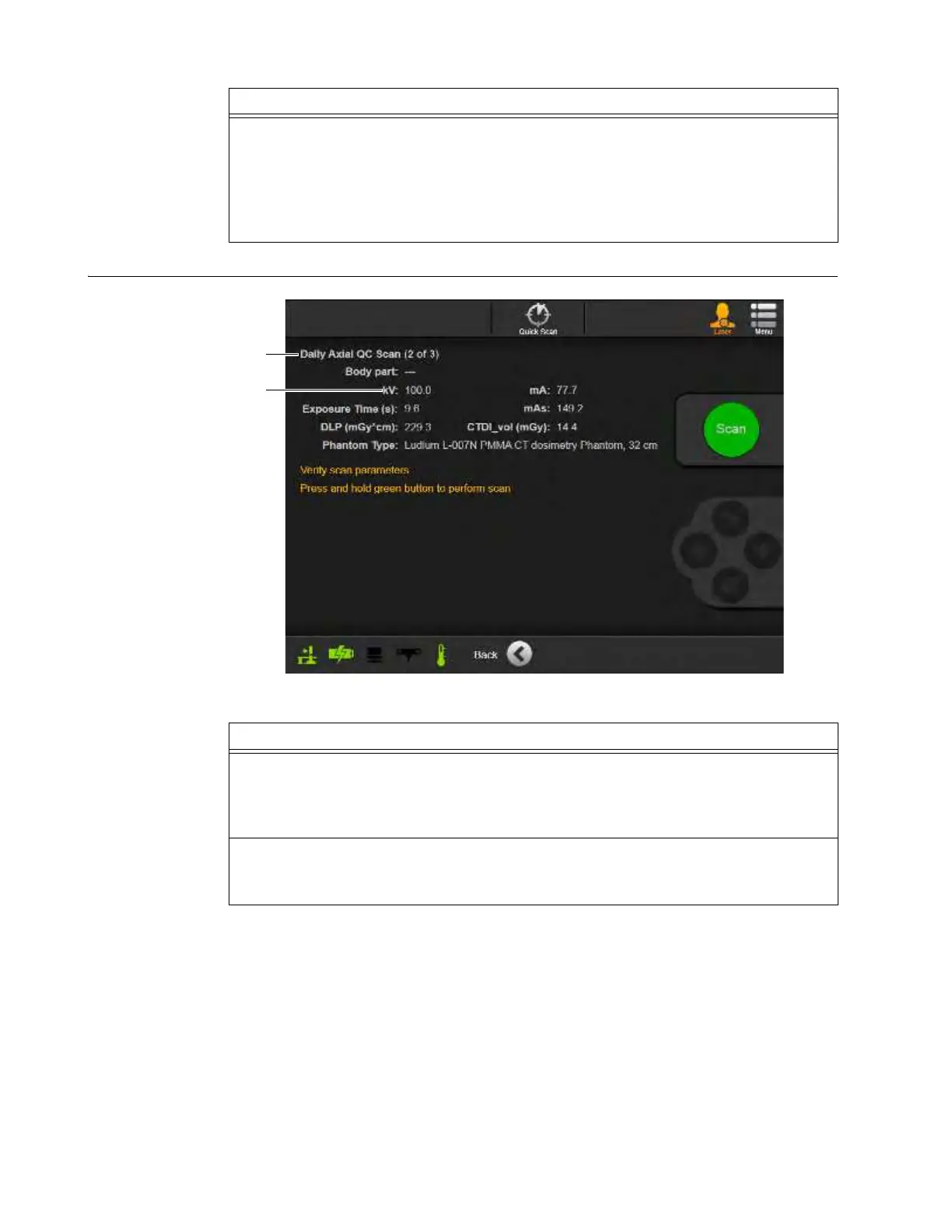 If multiple kV levels were selected during QC scan setup, the scan for the next kV level in