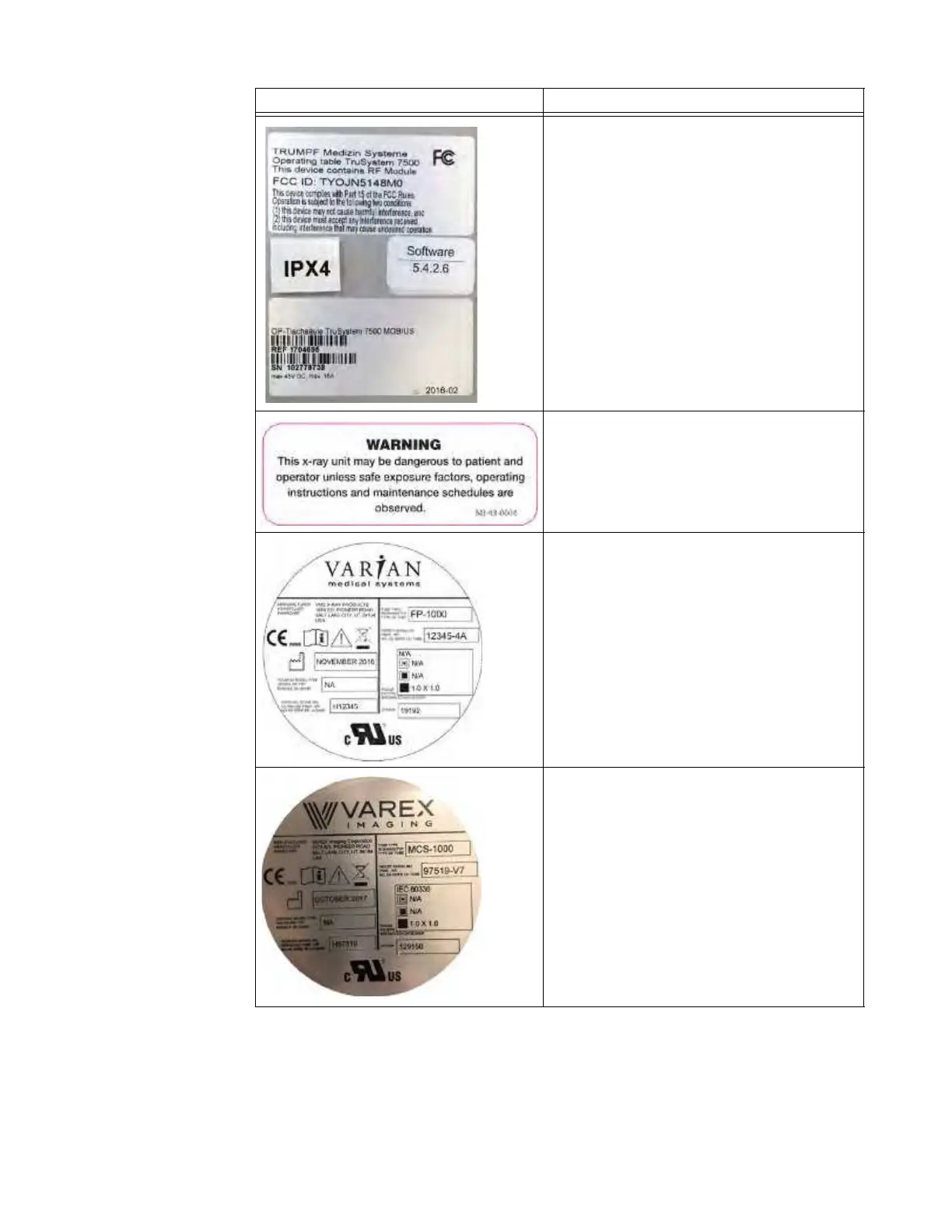 X-ray Tube Label: This label certifies that the