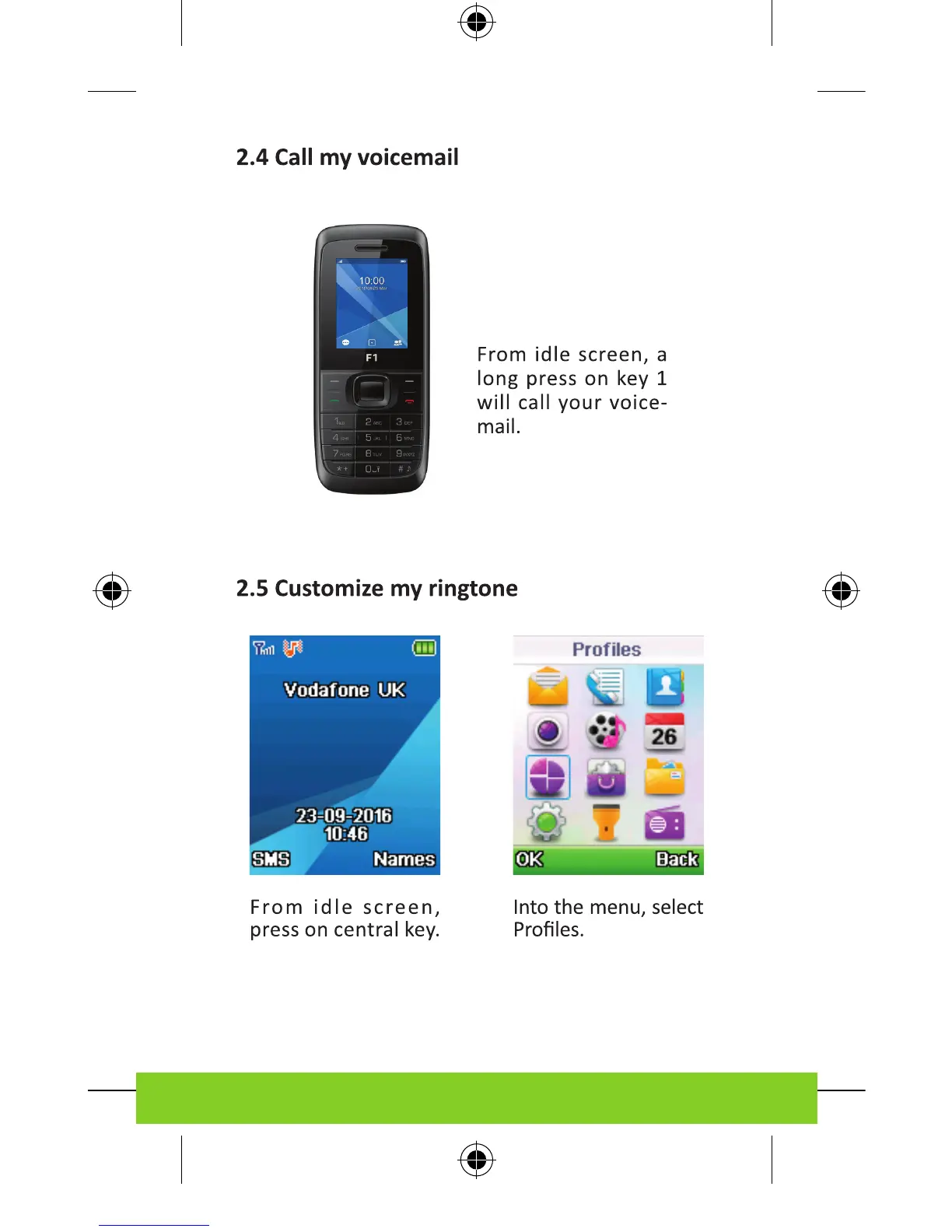 MOBIWIRE F1 - 2.4 Call my voicemail; 2.5 Customize my ringtone