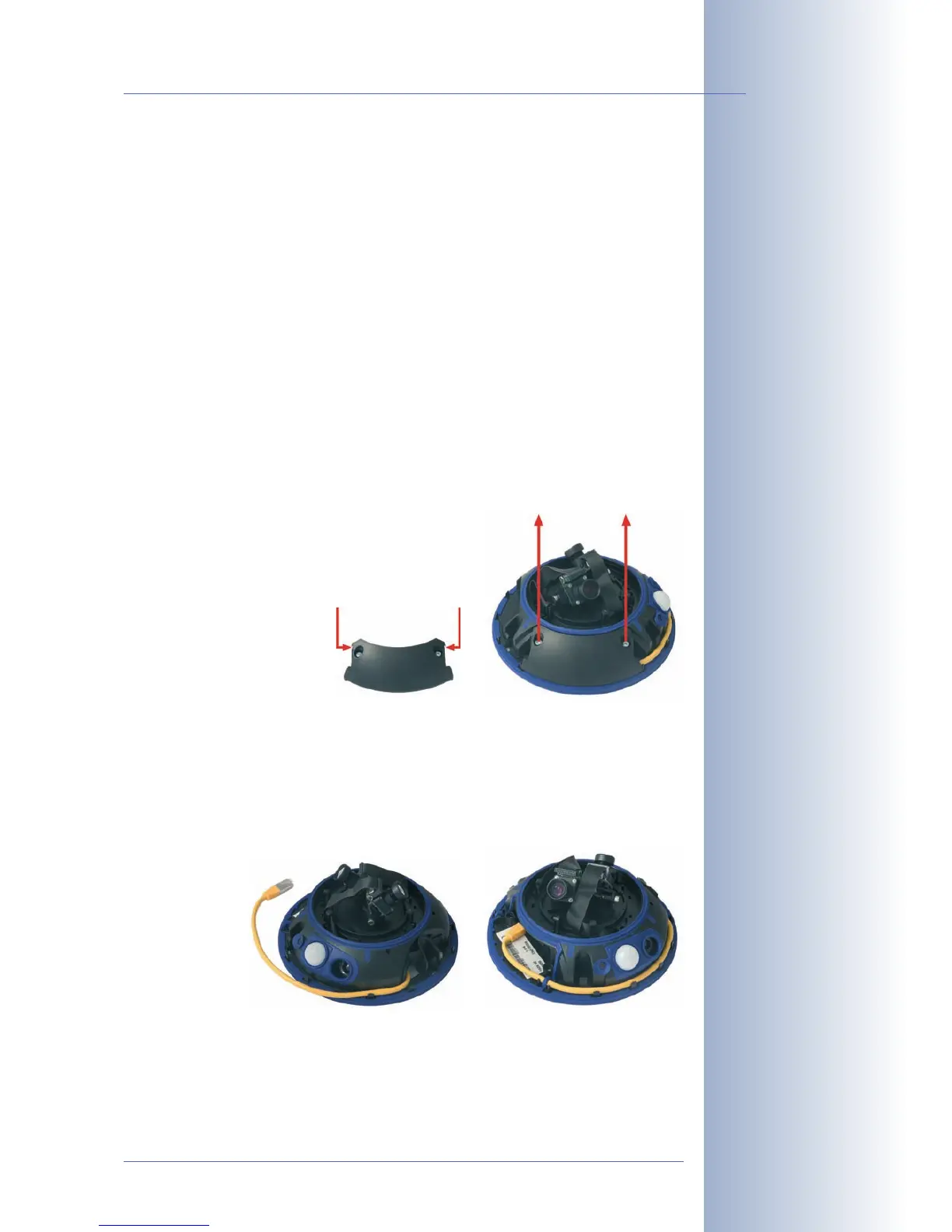 • Lead the CAT5 cable from the bottom of the camera housing through the
