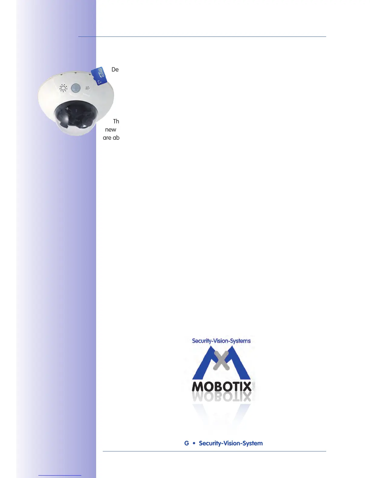This Camera Manual will give you an initial overview of the innovative MOBOTIX concept