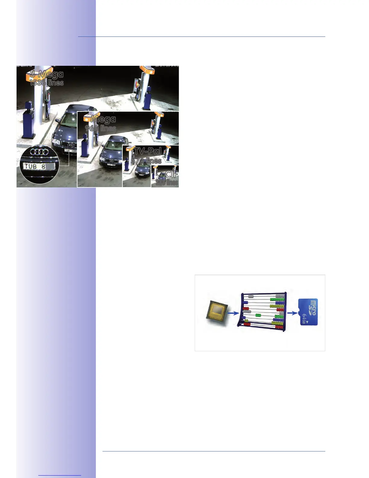 example, four lanes of a gas station can be recorded with one MOBOTIX camera instead