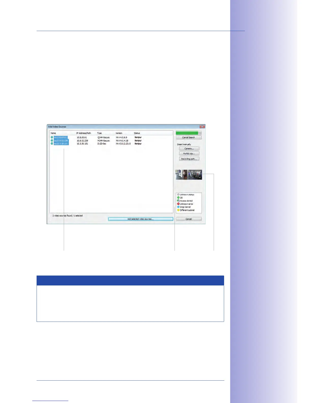 perform a camera search at a later time, select Video Source > Add from the menu.