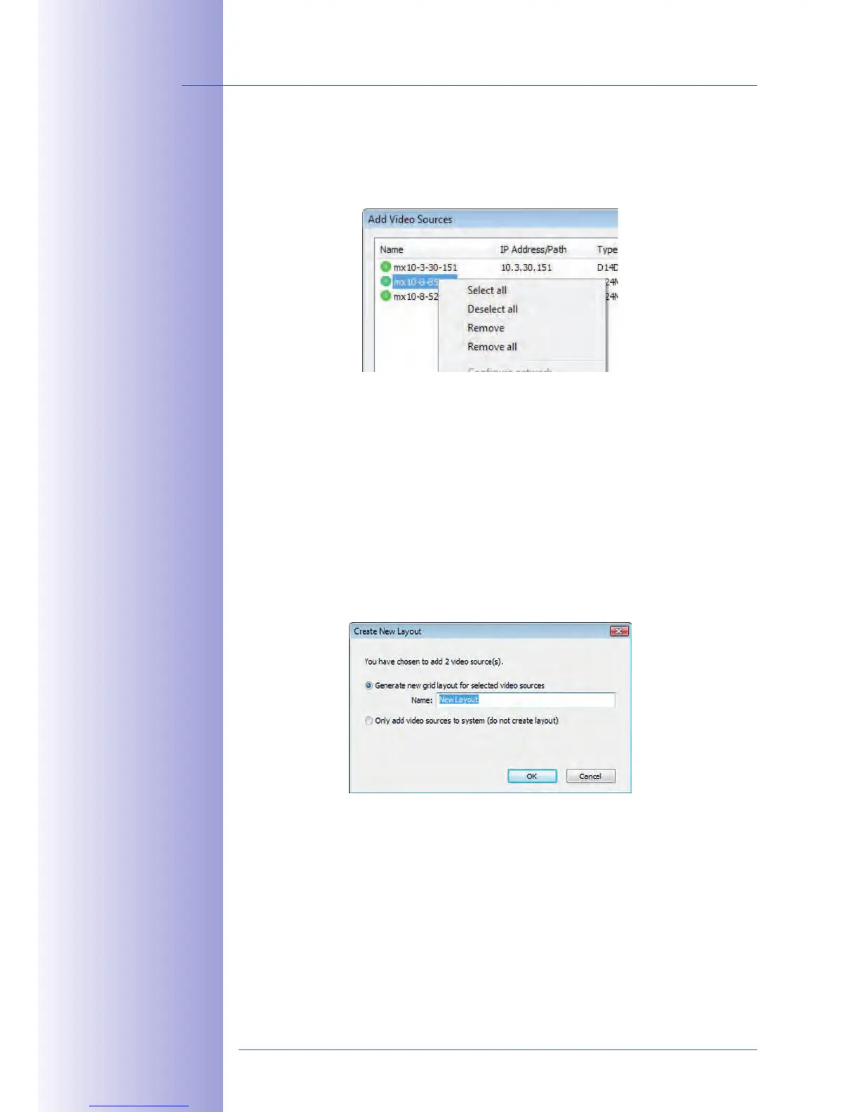 of the video sources that you would not like to display or manage in MxControlCenter.