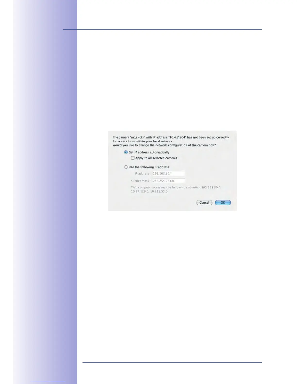 fixed IP addresses (issued by your system administrator) to every camera (the Use this