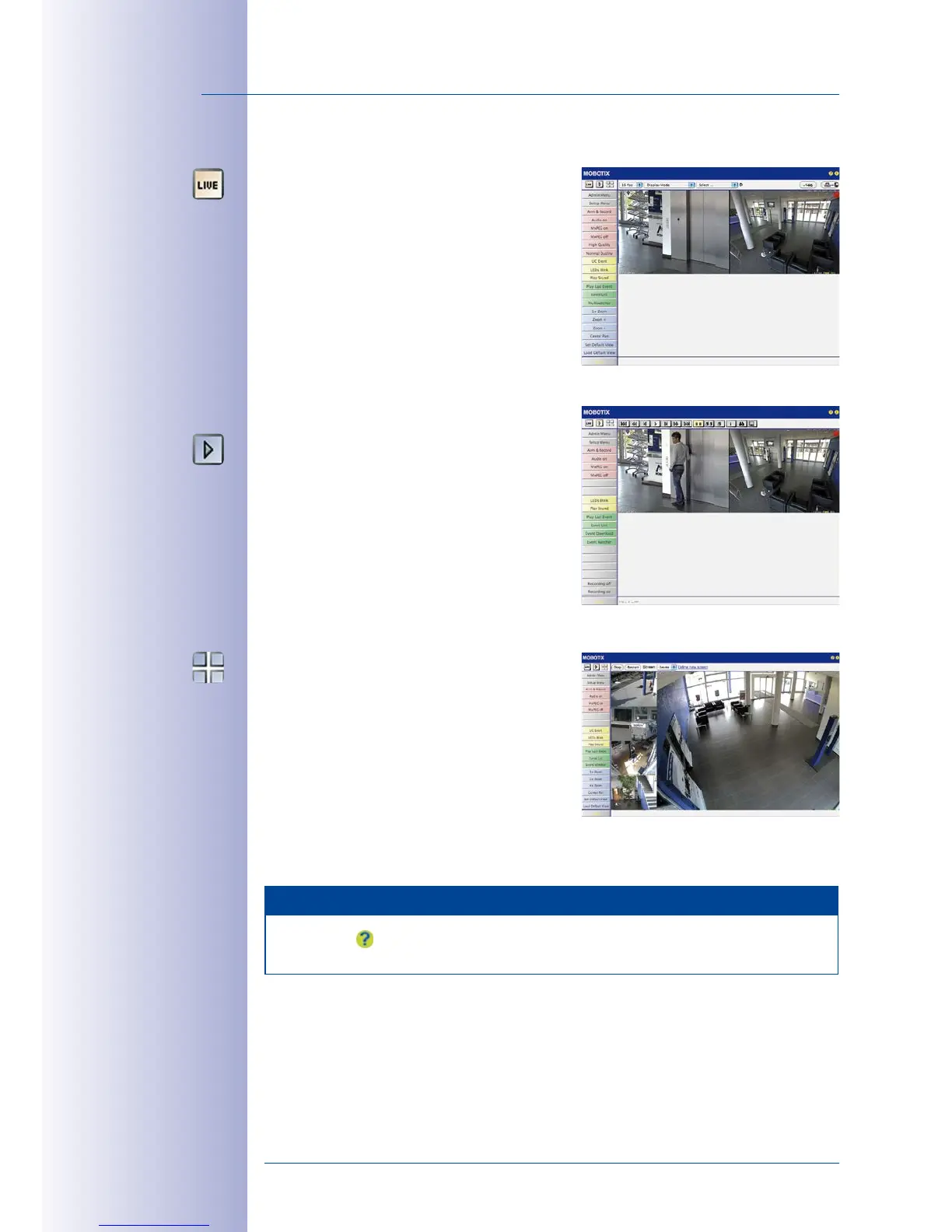 several cameras with live or recorded images).