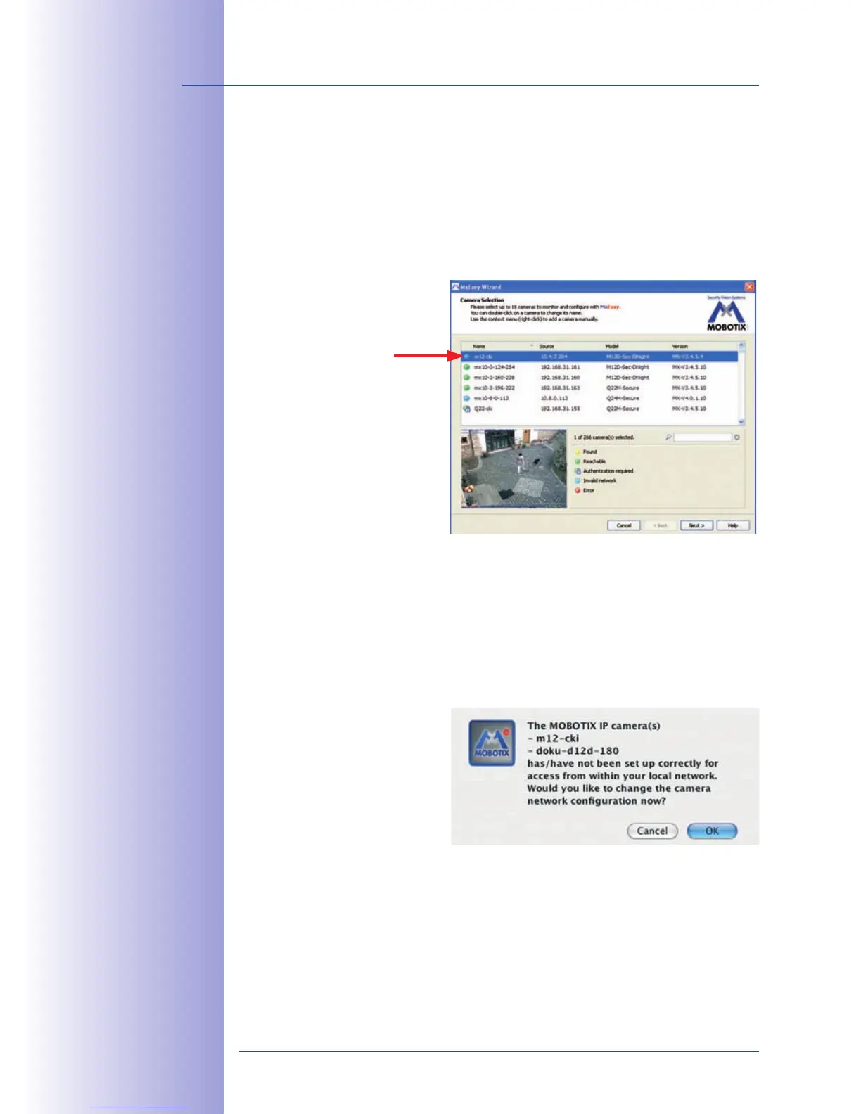 but also MOBOTIX cameras located in other subnets (Status ). In such a