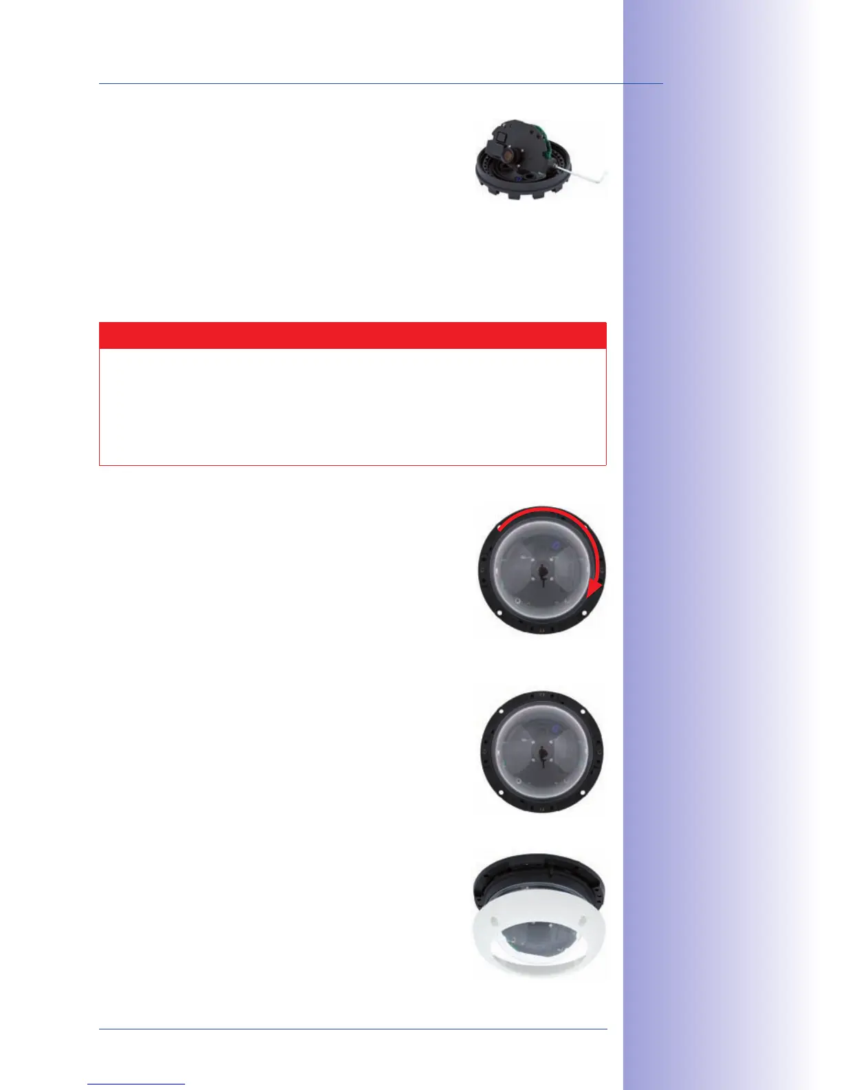 lens shifts slightly once the dome has been mounted. Before mounting the dome,