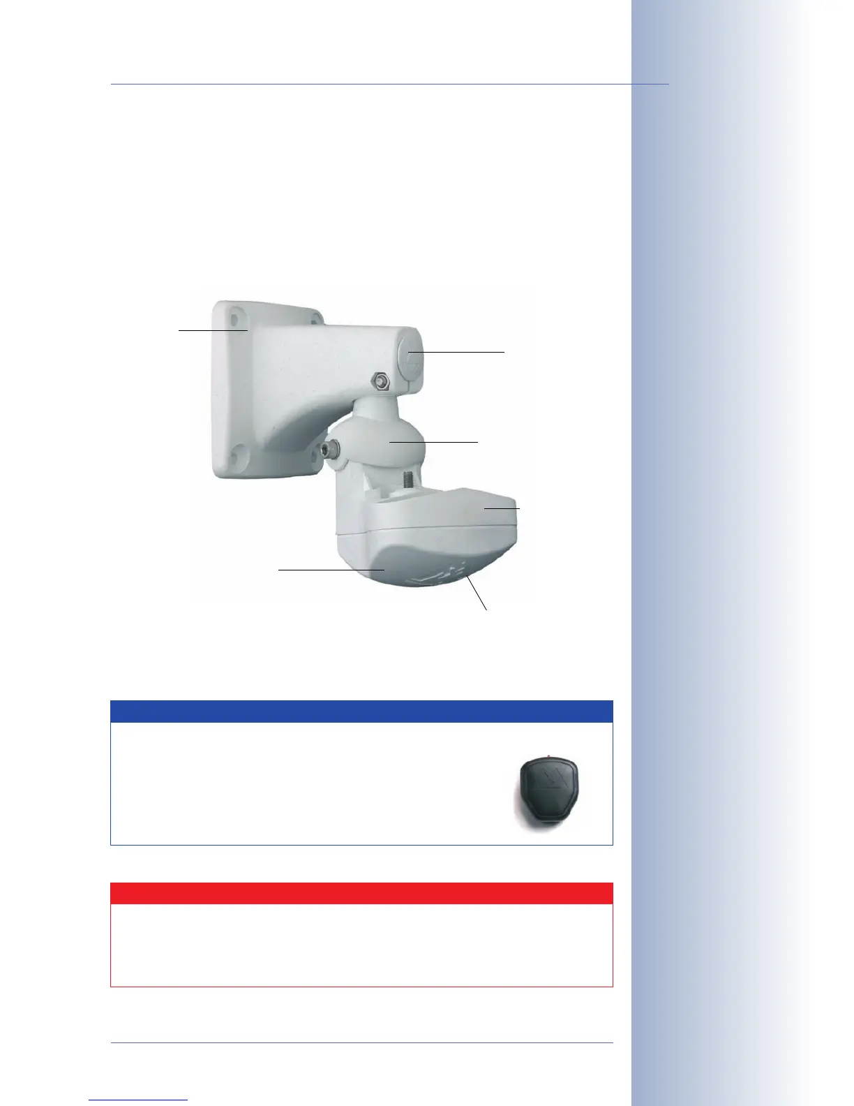 the camera into virtually any direction. On top, the SecureFlex wall mount covers