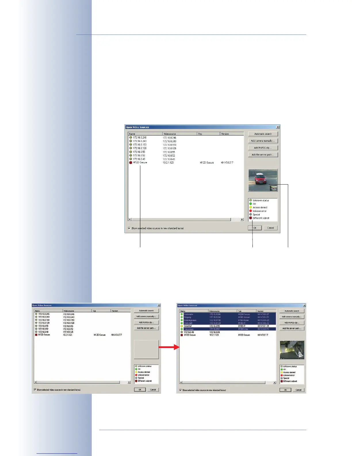 layout with the desired video sources (i.e. MOBOTIX cameras), the Open Video