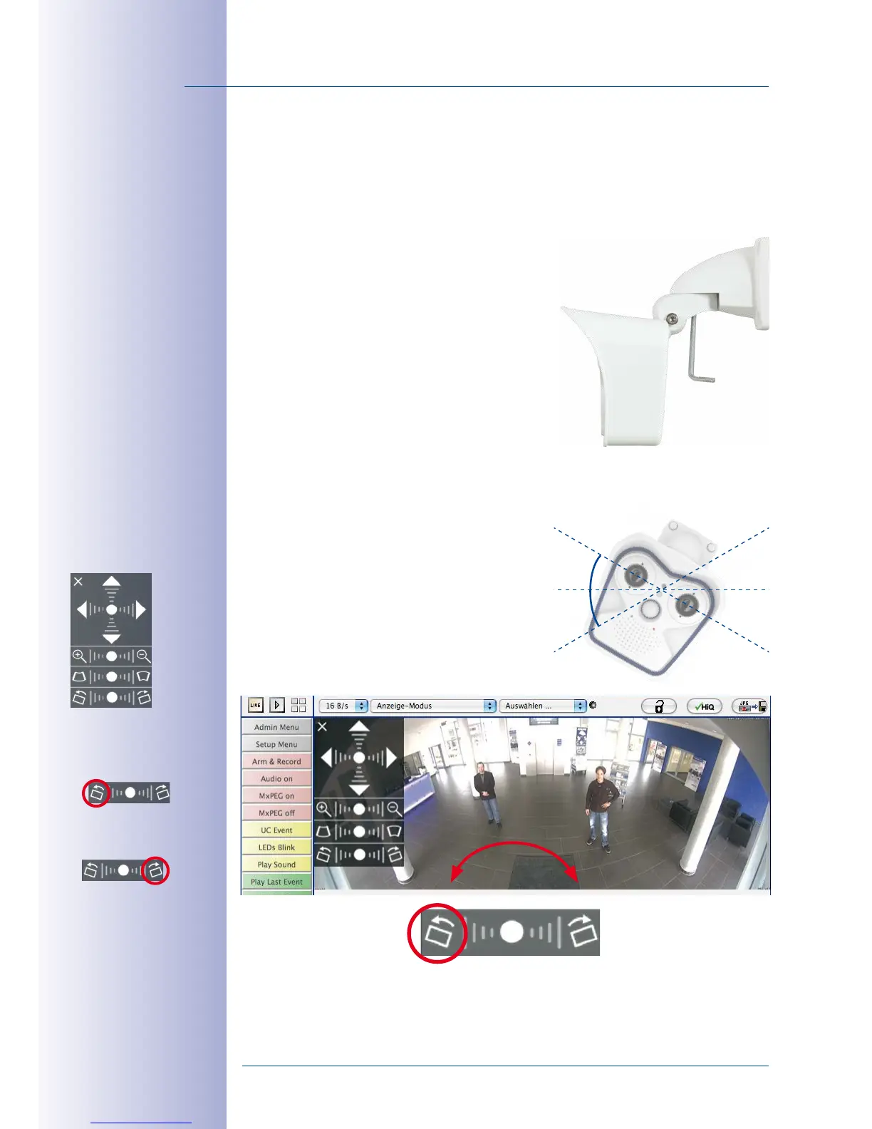 3. Display the desired camera section on the