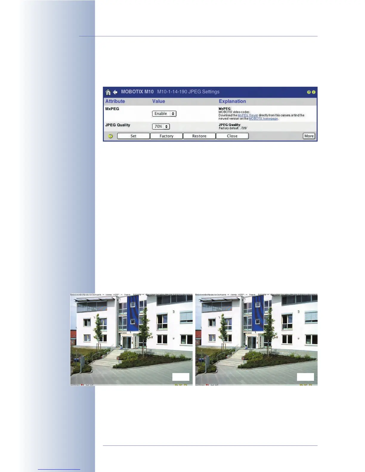 your MOBOTIX camera (JPEG or MxPEG) and set the quality of the image data.