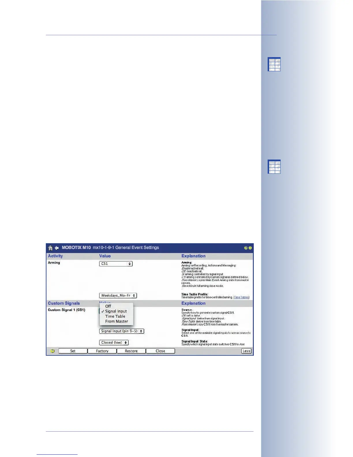to arm one or more MOBOTIX cameras. The signal input may also be used to