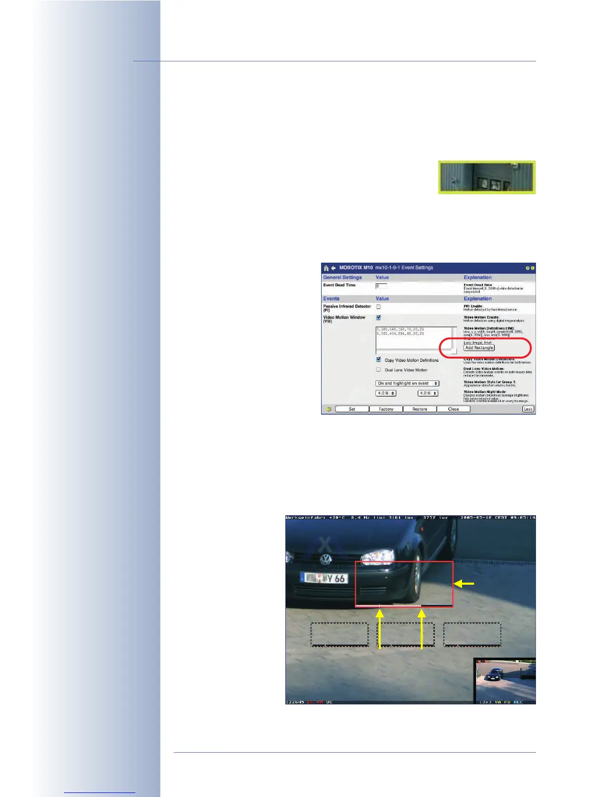 •In Setup Menu > Event Settings, click on the Add Rectangle button within