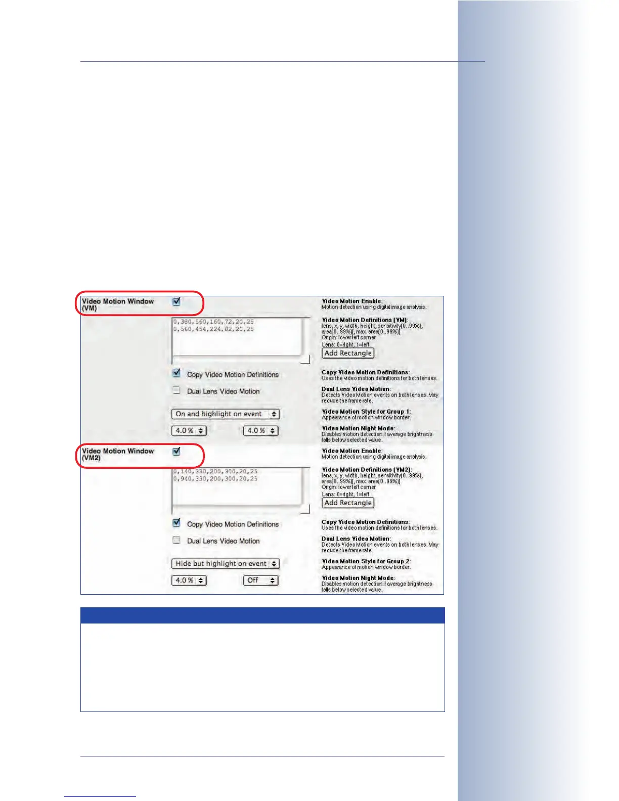 Second set of video motion windows (VM2)