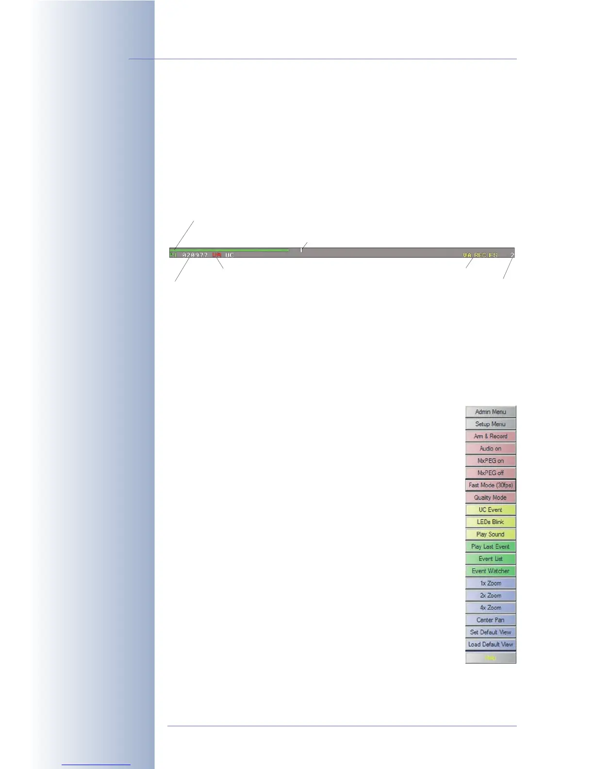 The softbuttons on the left side of the Live, Player and MultiView screens allow
