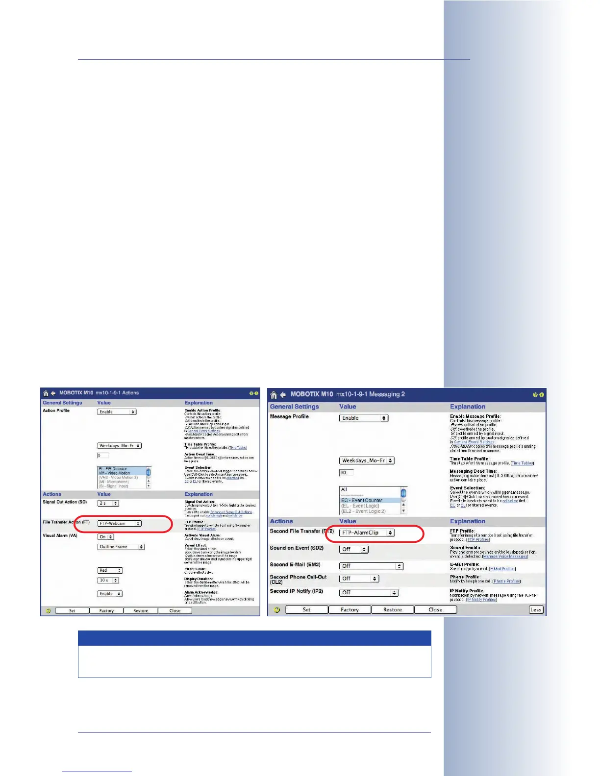 The FTP profiles defined in this dialog can be used in Setup Menu > Actions and