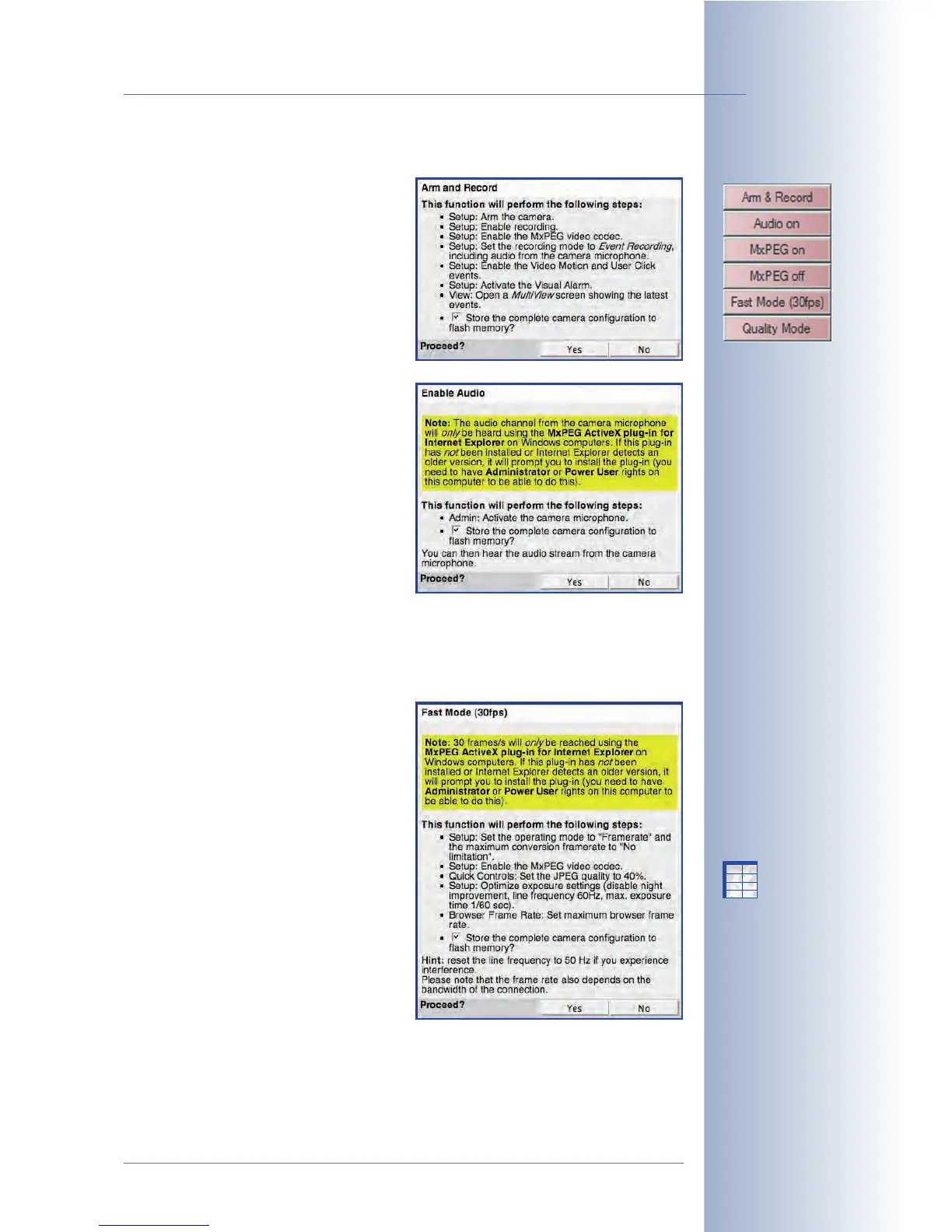 • MxPEG on and MxPEG off: These buttons activate the MxPEG codec (