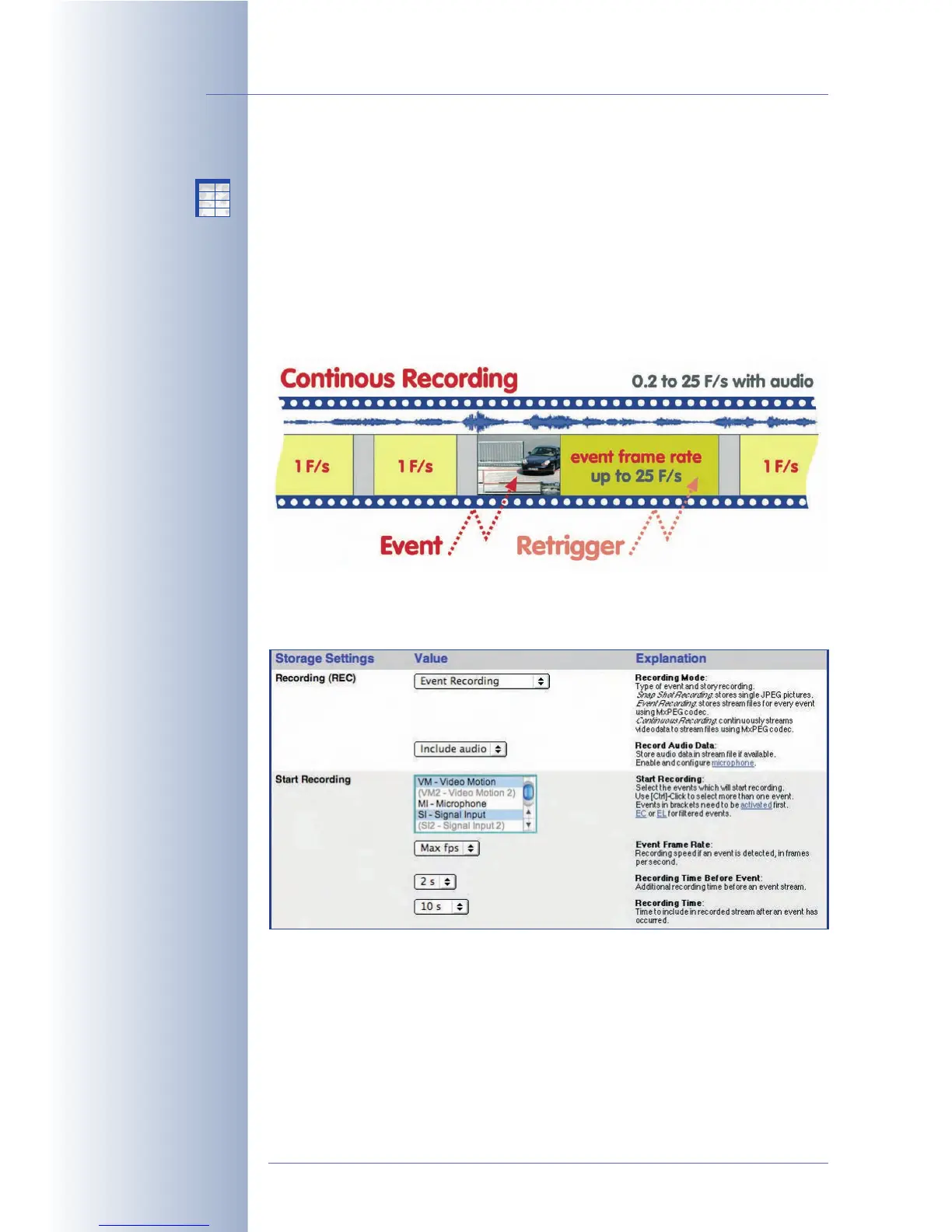 to max. 30 frames per second). This approach continuously stores the video and
