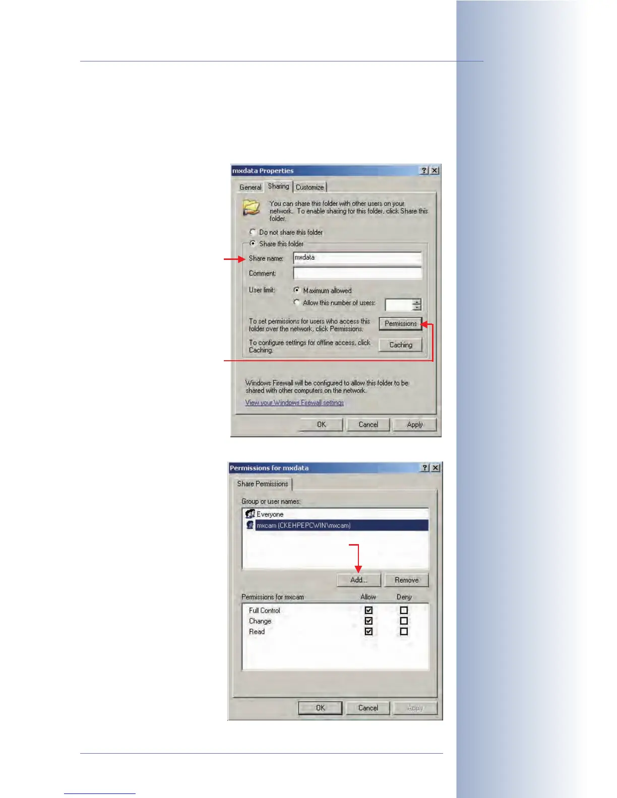 • Step 6: Activate Share this folder. Enter a share name (e.g. mxdata).
