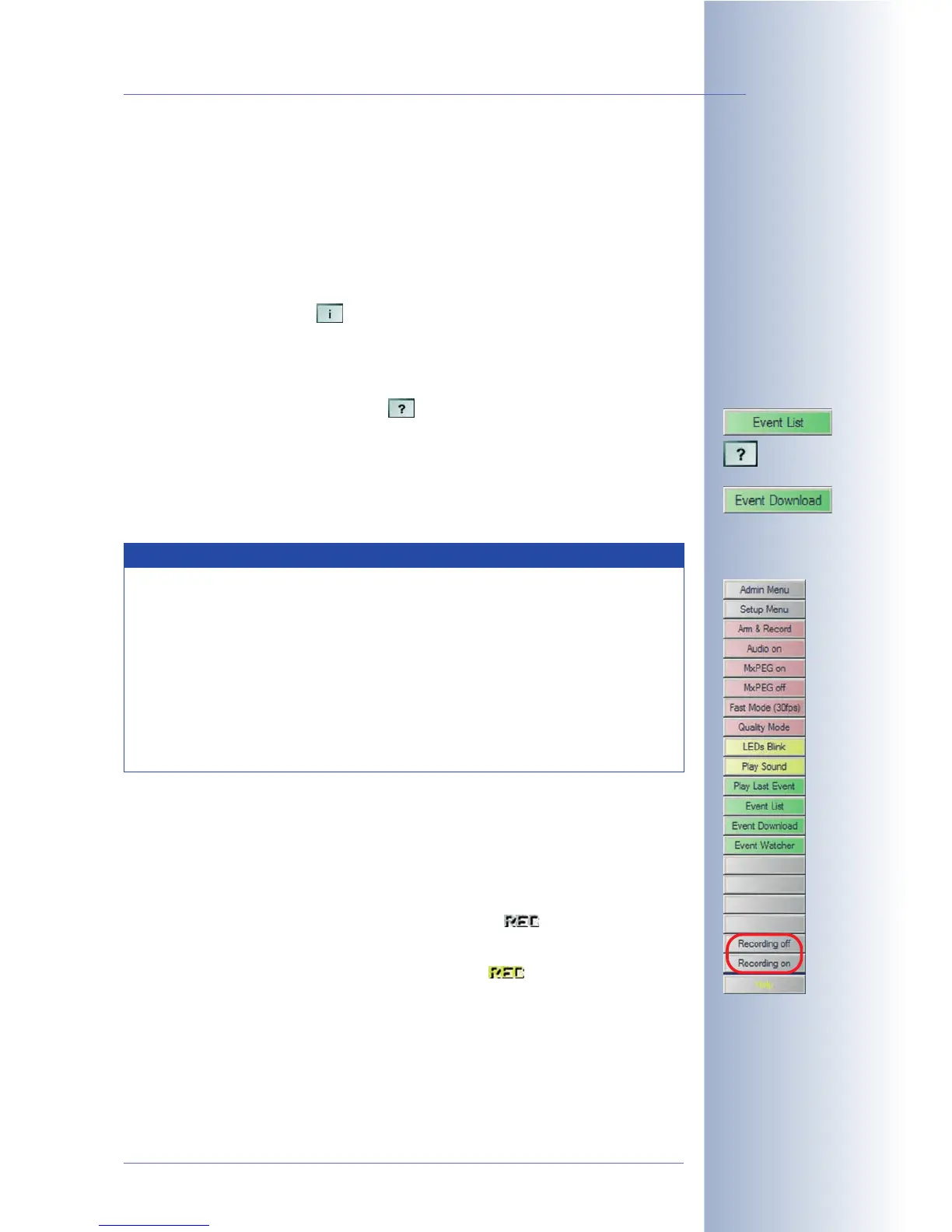 ), the lower part features the Recording off and