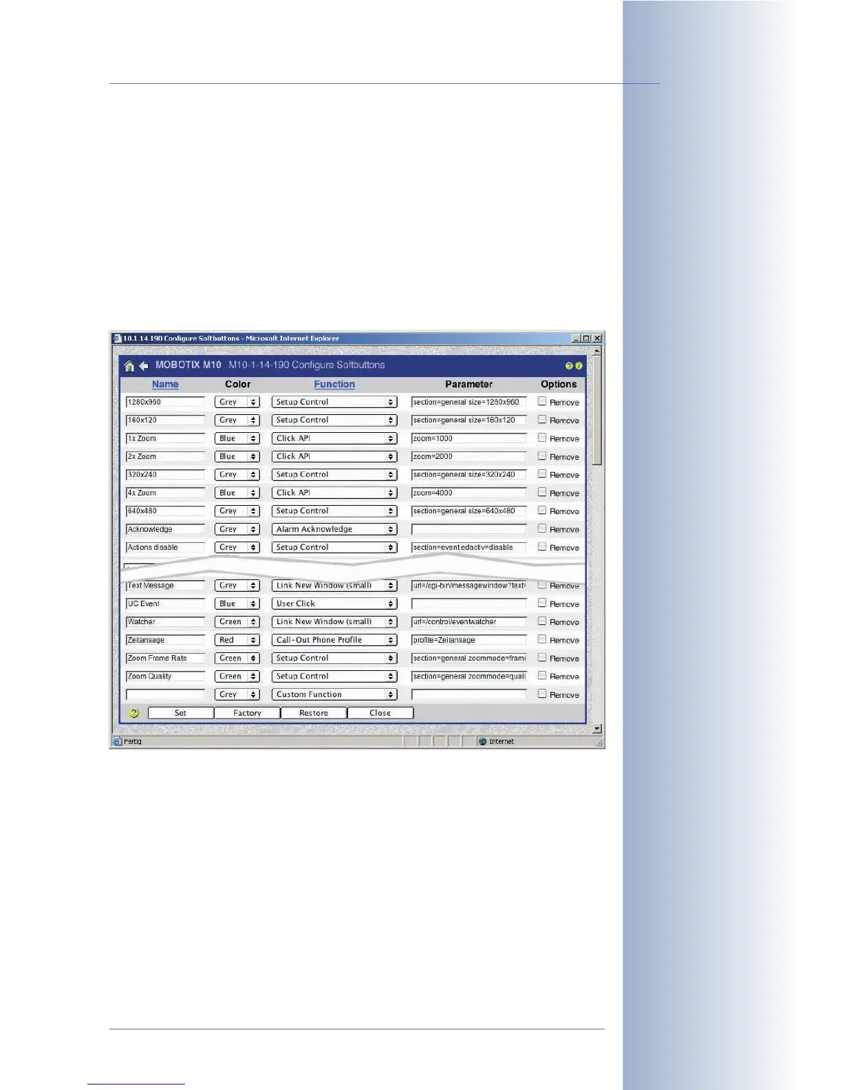 In order to delete certain softbutton definitions, activate the Remove check box and