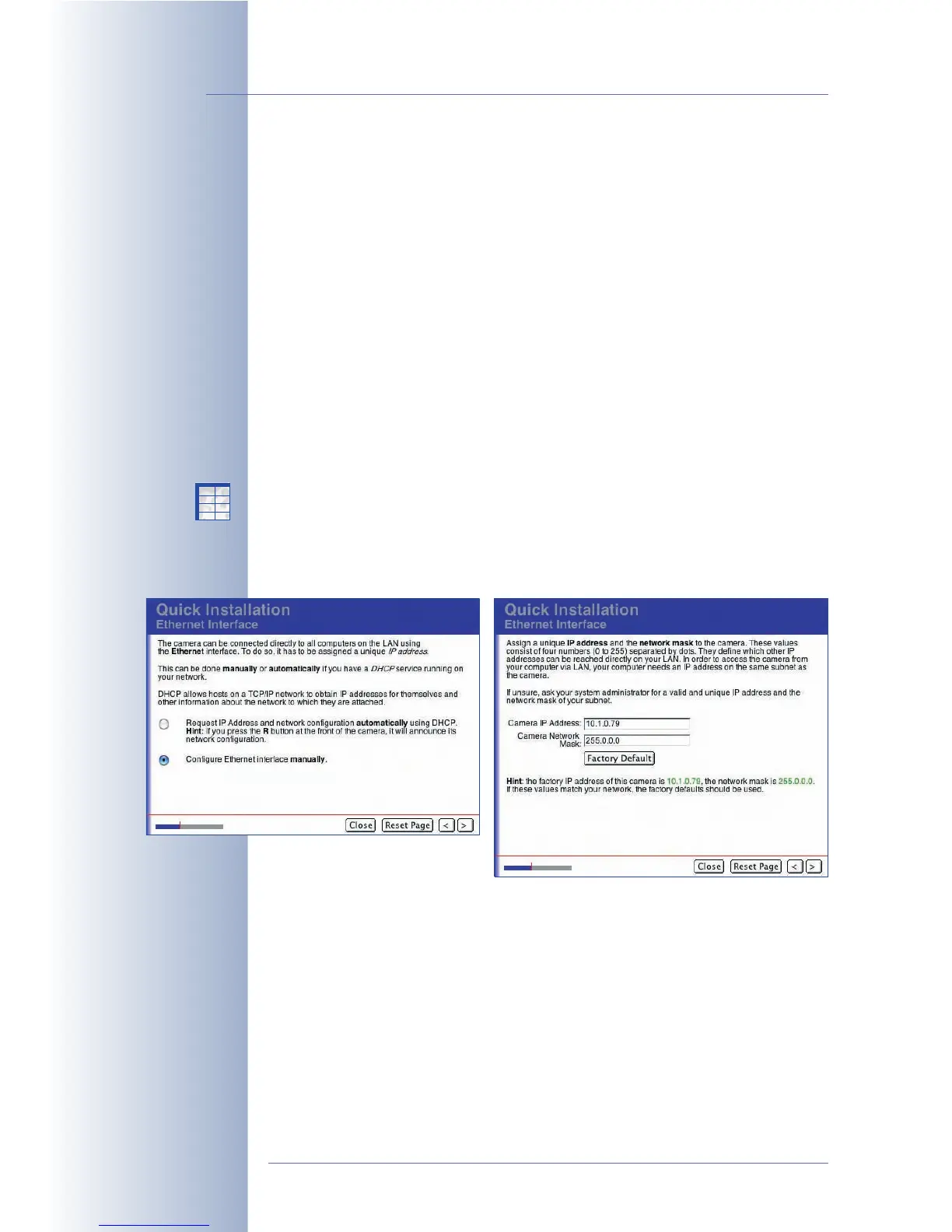 DHCP and Manual IP Address / IP Address and Network Mask of the Camera