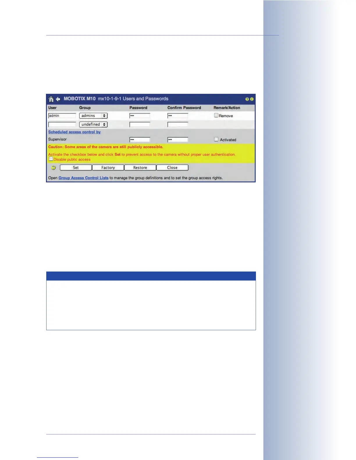 CAUTION: Resetting to factory defaults in Admin Menu > Group Access