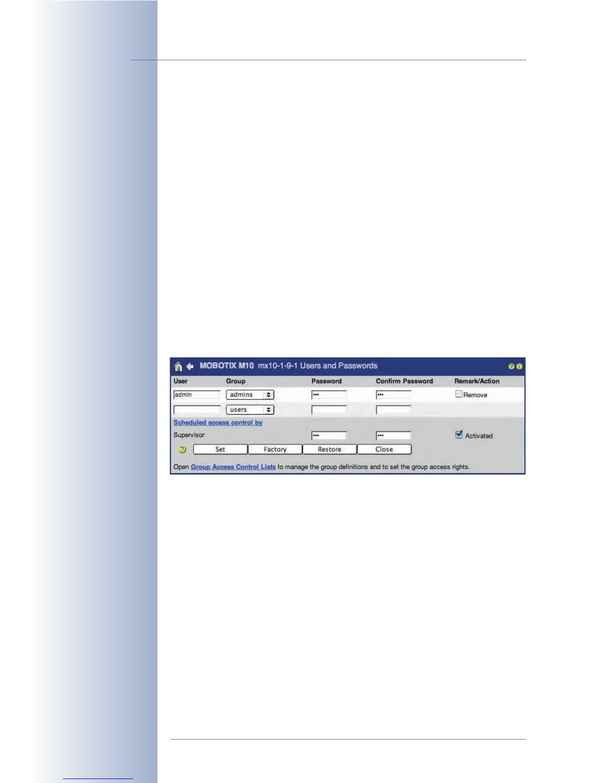 To start with, a user with administrator privileges has to activate the Supervisor fea-