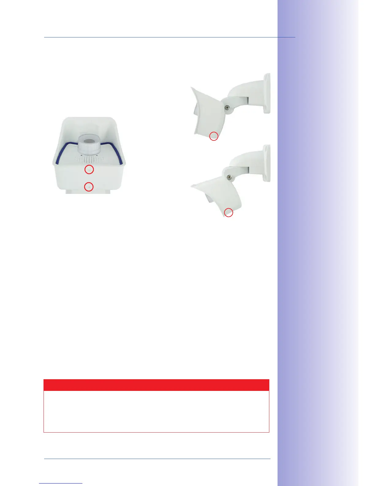 When cleaning the camera with a water jet, do not use high-pressure cleaners. The drain