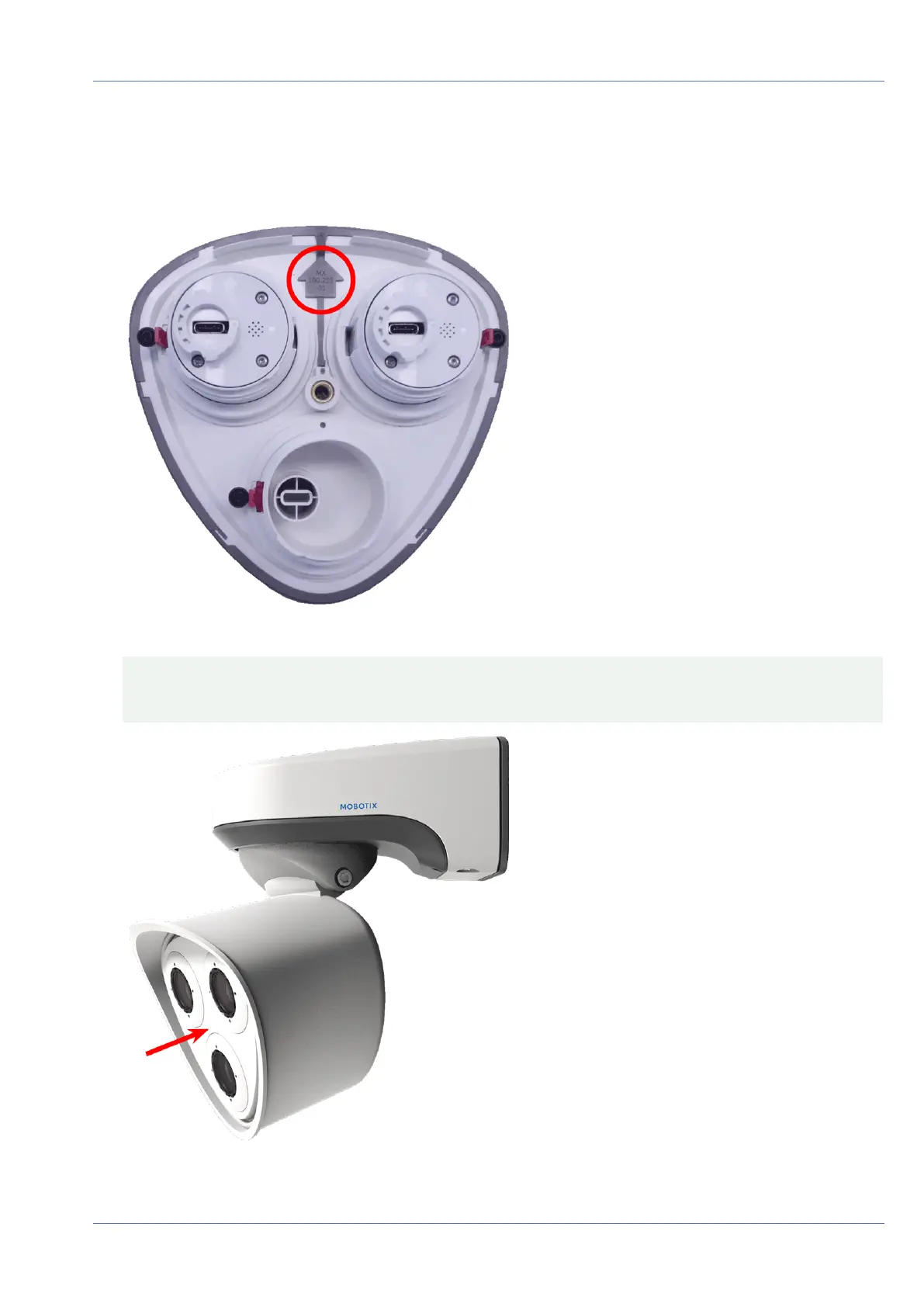1. Make sure that the arrow of the front plate (red circle in figure) points upwards when inserting the front