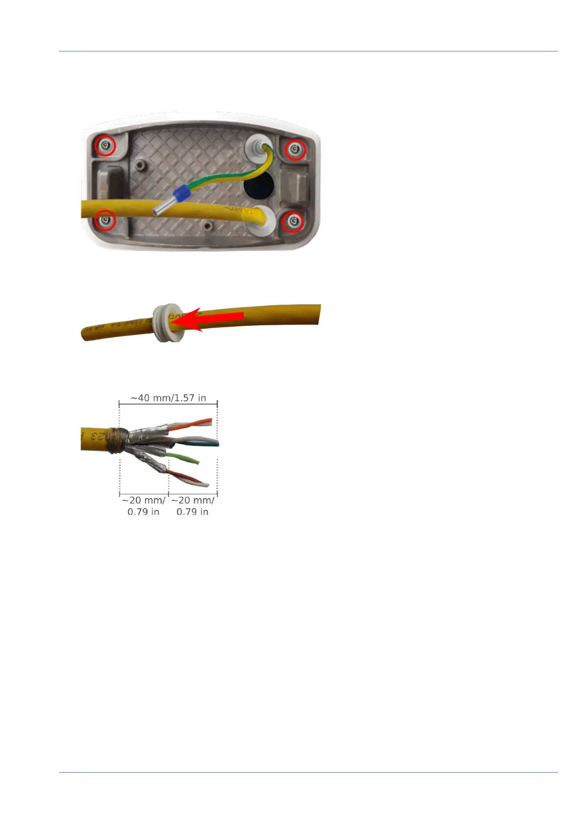 3. Guide the ground wire through the upper cable plug and the network cable through the lower cable plug