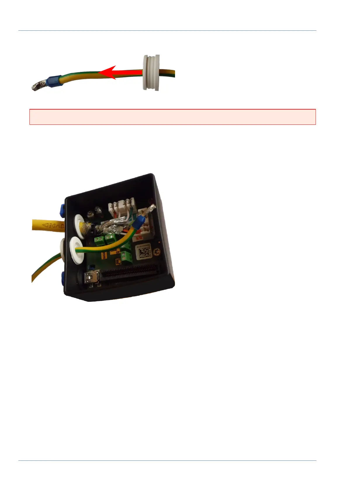 7. Insert the ground wire into the connector box and make sure the rubber plug is properly seated all