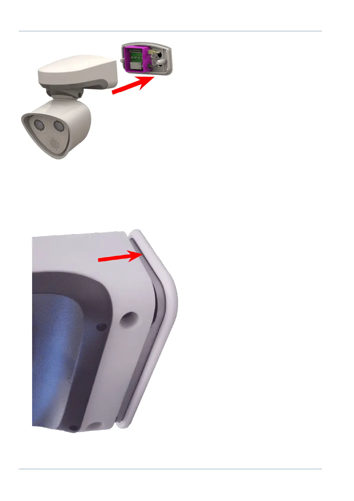 1. Press the camera body onto the installed mounting plate, so that the wall sealing snugly seals off the cam-