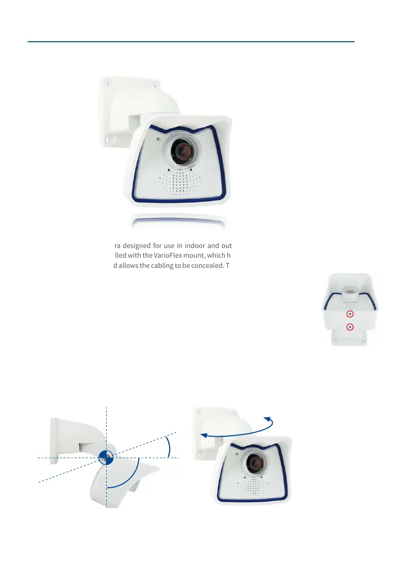 Using the VarioFlex Wall Mount, the camera can be precisely panned, both horizontally and