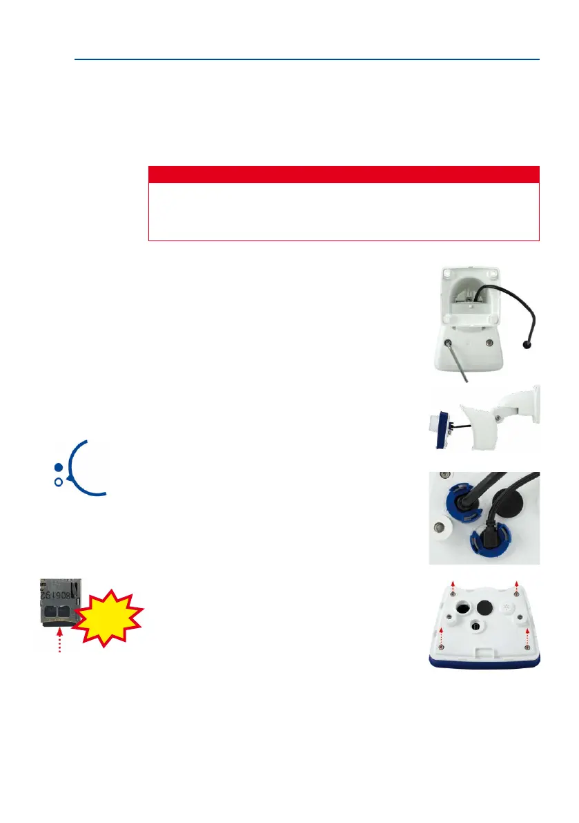 To use the camera without a MicroSD card, continue by mounting the back plate (see step 2