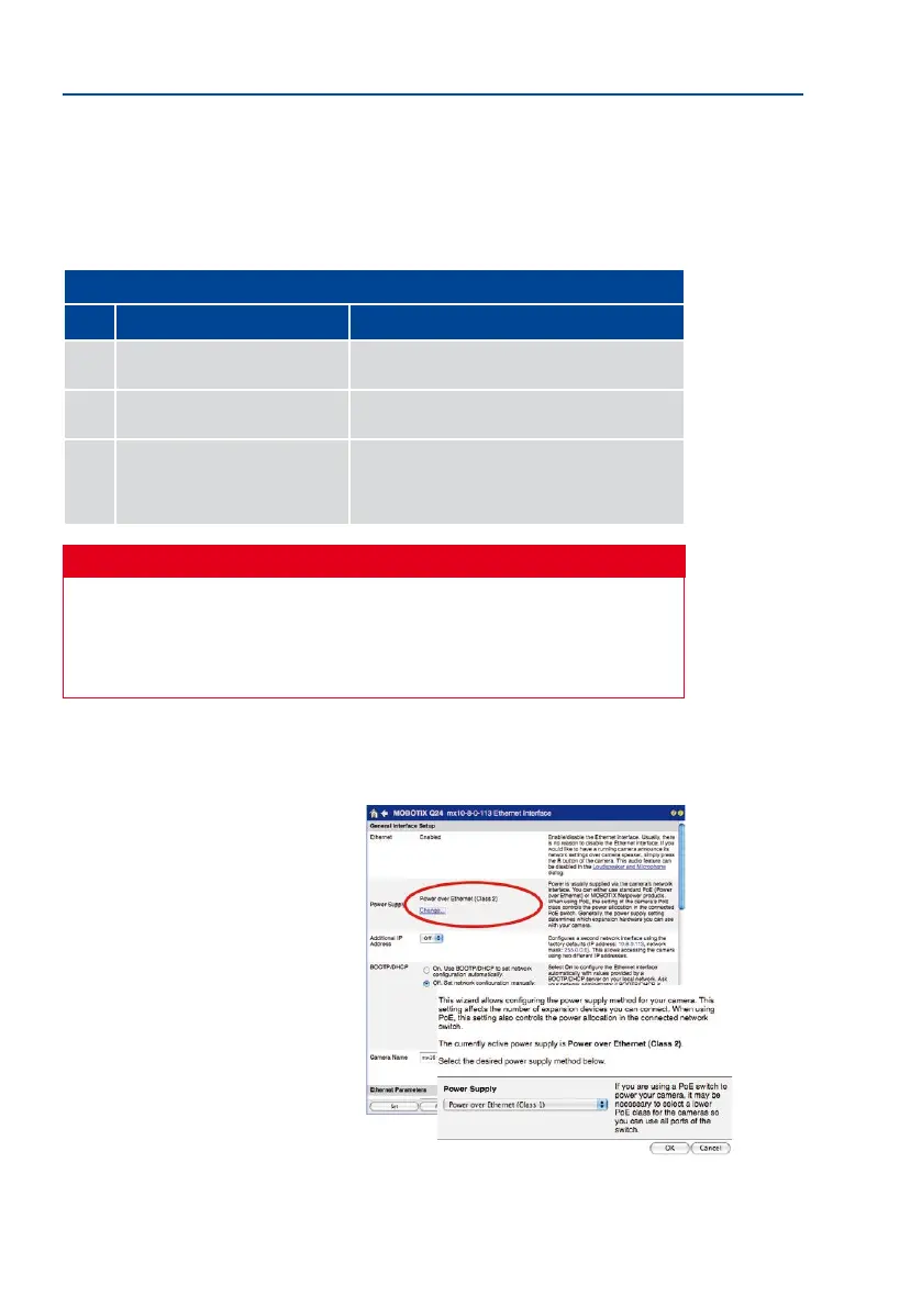 provided by the PoE switch for the specied class, the switch can disconnect the camera