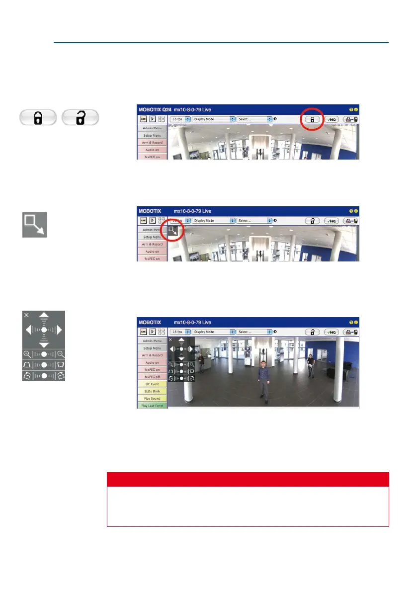 the displayed live camera image as desired (panning, tilting, zooming, rotating and
