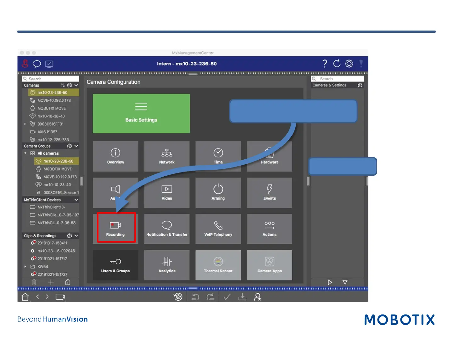 Click on Recording to configure