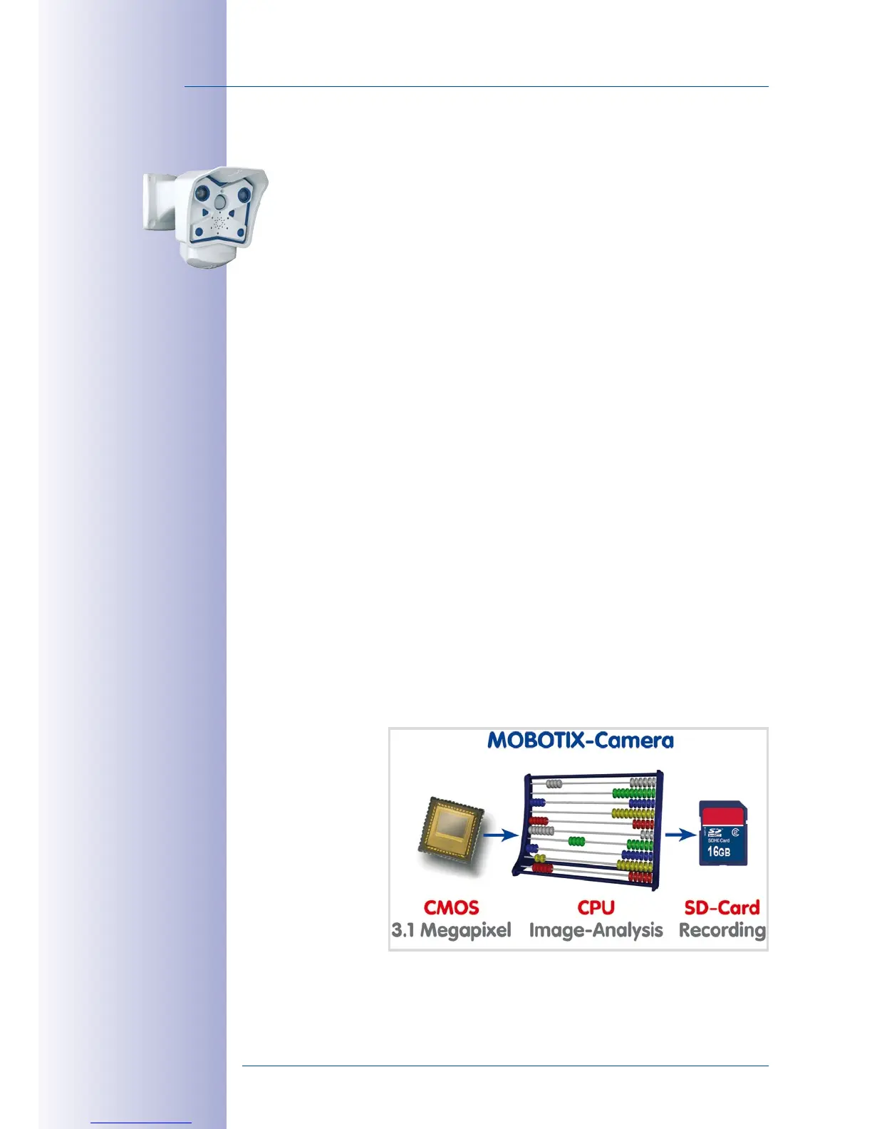 0.1 megapixels (CIF).On the contrary, one MOBOTIX camera with 3.1 megapixels records
