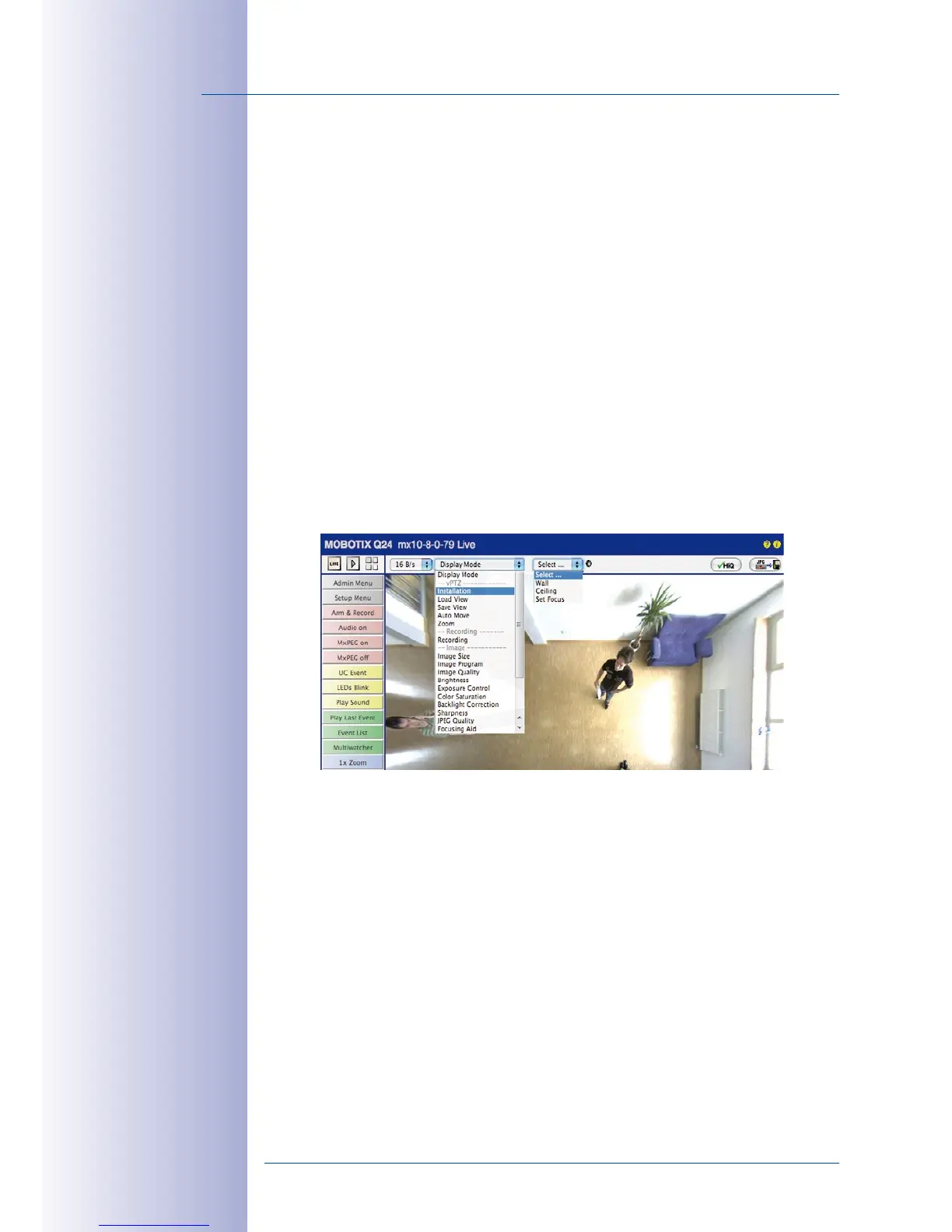 options for the image settings. Depending on where the camera is mounted (ceiling or