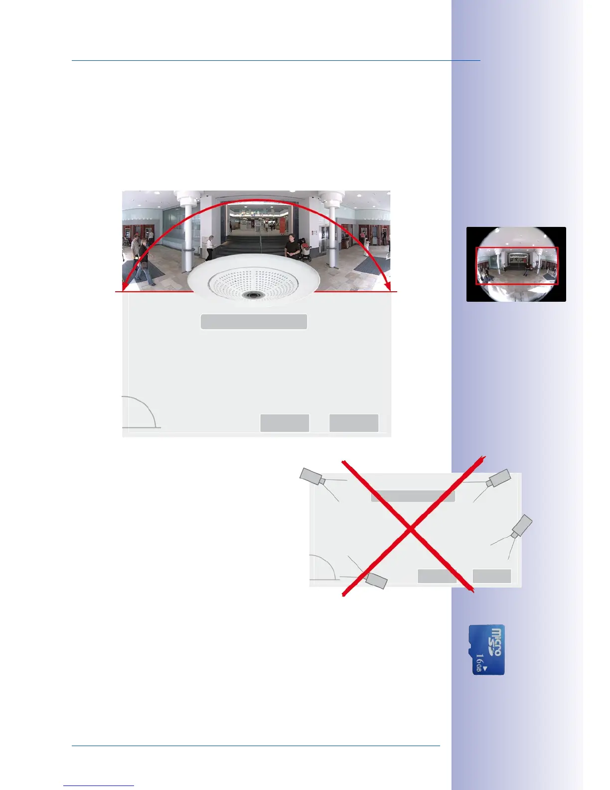 angle panoramic view spanning 180° if the camera is mounted on a wall, providing a