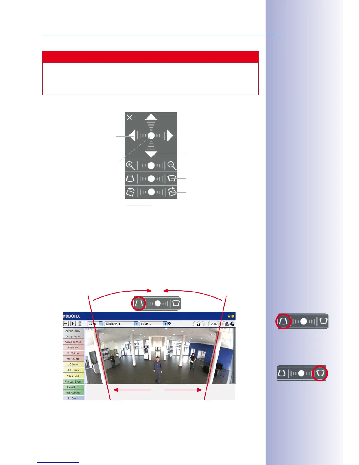 To use the OnScreen Control, click on the arrows in the top area for shifting the image