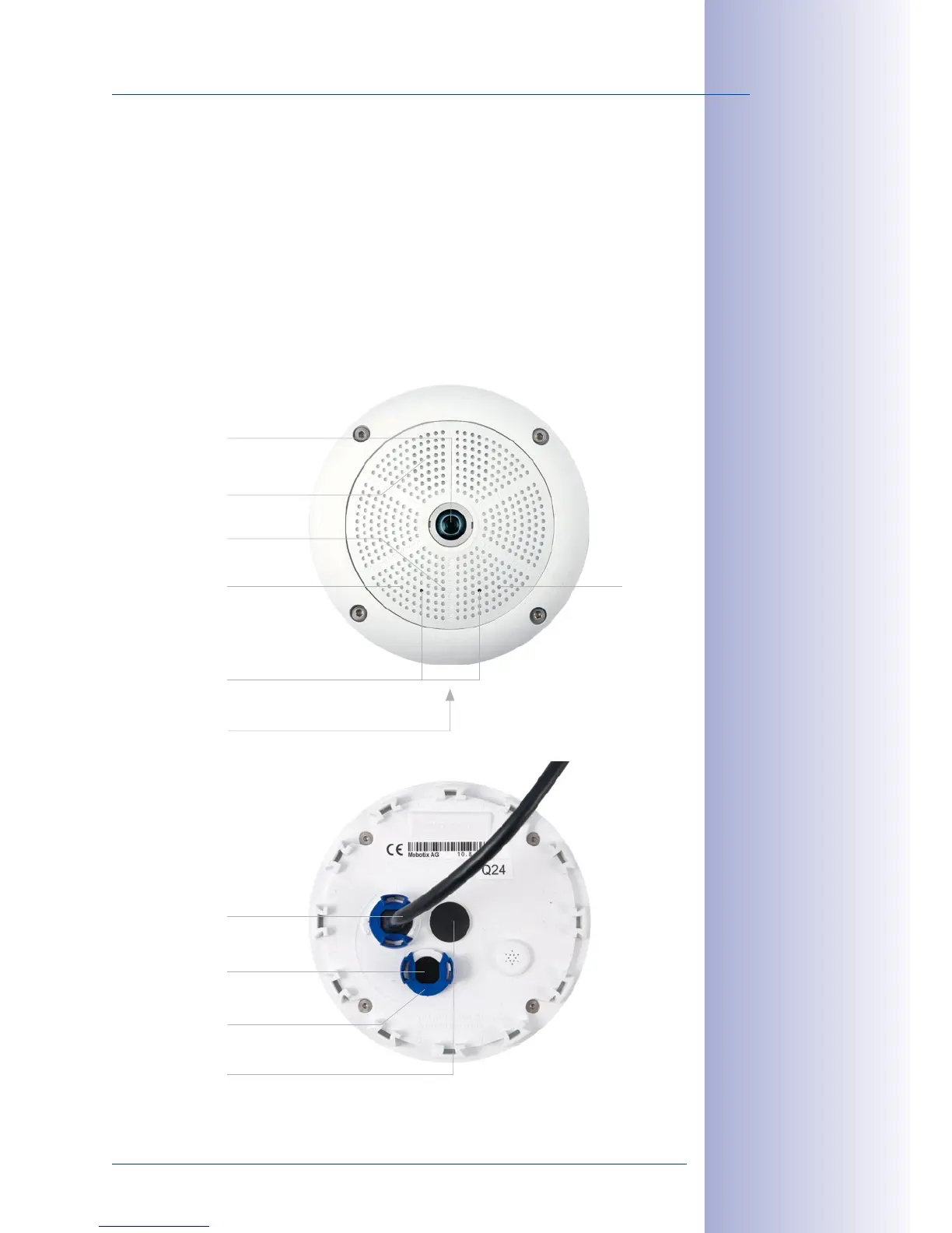 The MOBOTIX Q24M consists of the camera housing (motherboard and lens), the outer